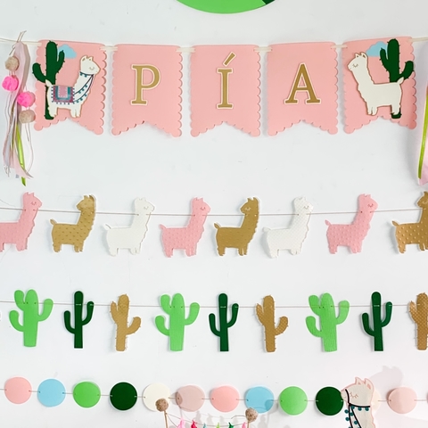 * 2 Guirnaldas de figuras temáticas troqueladas - llamas y cactus -x 1,80 mt./ 2,00 mt c/u.- largo regulable.
